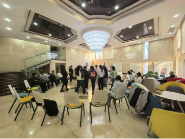 本次活动以经典的“击鼓传花”游戏拉开帷幕,该游戏规则简单且极具趣味性,能快速调动同学们的参与热情。随着鼓点声欢快响起,象征着互动与欢乐的“花”在同学们手中迅速传递。大家神情专注,既期待着“花”的到来,又在传递瞬间加快速度,整个现场被紧张又欢快的氛围笼罩。鼓点的节奏时而急促、时而舒缓,牵动着每一位同学的心。当鼓声突然戛然而止时,“花”便定格在某位同学手中,这位“幸运观众”需要做出一个动作,其余同学则需完整模仿该动作,完成互动挑战。